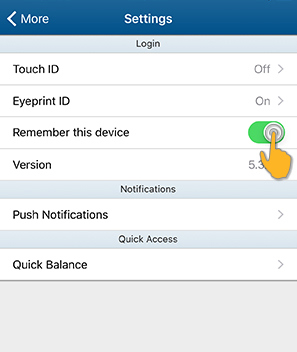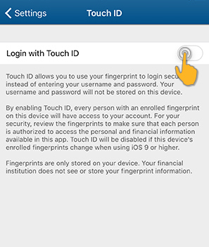You can sign in to the app by using a Touch ID-enabled iPhone/iPad devices without entering your credentials.