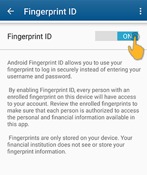 You can sign in to the app by using Fingerprint ID from your Android phone equipped with a fingerprint sensor without entering your credentials.